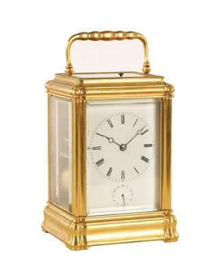 Lot 1036 - A GOOD 19TH CENTURY FRENCH REPEATING CARRIAGE CLOCK WITH ALARM