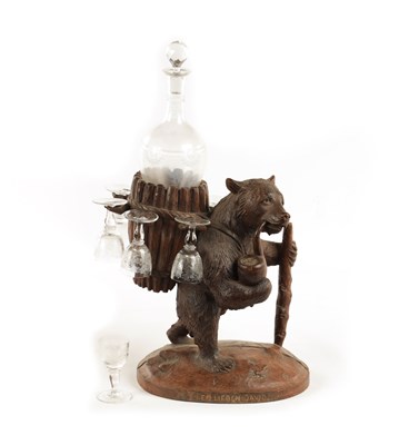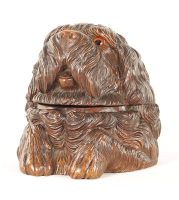 Lot 1140 - A 19TH CENTURY CARVED LINDEN WOOD BLACK FOREST TOBACCO JAR FORMED AS A DOG