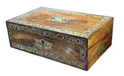 Lot 1151 - AN 18TH/EARLY 19TH CENTURY BRASS INLAID ANGLO INDIAN HARDWOOD FITTED BOX