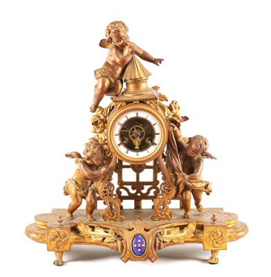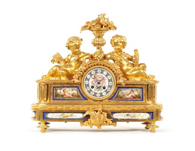 Lot 1065 - A 19TH CENTURY ORMOLU AND ONYX PANELLED MANTEL CLOCK
