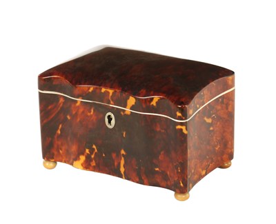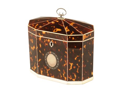 Lot 1126 - † A FINE GEORGE III TORTOISHELL, IVORY AND SILVER MOUNTED FACETTED TEA CADDY