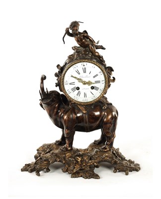 Lot 1094 - A RARE EARLY 19TH CENTURY FRENCH BRONZE AND ORMOLU AUTOMATION MANTEL CLOCK