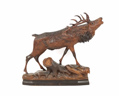 Lot 1121 - A LARGE EARLY 20TH CENTURY AUSTRIAN CARVED STAG