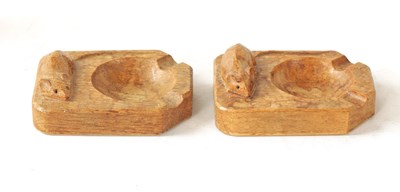 Lot 1098 - TWO ROBERT 'MOUSEMAN' THOMPSON LIGHTLY ADZED LIGHT OAK ASH TRAYS