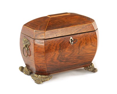Lot 1116 - A REGENCY ROSEWOOD AND BOXWOOD INLAID BOMBE SHAPED TEA CADDY