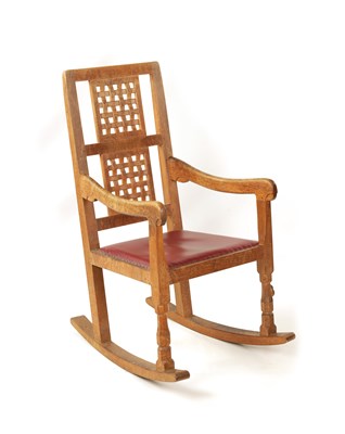 Lot 1104 - A ROBERT 'MOUSEMAN' THOMPSON ADZED OAK ROCKING CHAIR