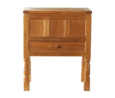 Lot 1102 - A ROBERT 'MOUSEMAN' THOMPSON JOINED ADZED LIGHT OAK SEWING BOX/SIDE CABINET