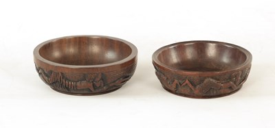 Lot 1149 - A PAIR OF AFRICAN LIGNUM VITAE RELIEF CARVED CIRCULAR BOWLS