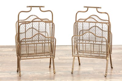 Lot 765 - A STYLISH PAIR OF EARLY 20TH CENTURY BRASS MAGAZINE RACKS