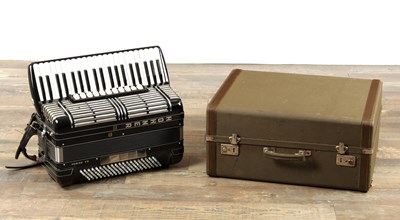 Lot 692 - A CASED HOHNER MORINO VN FIVE VOICE 120 BRASS ACCORDION
