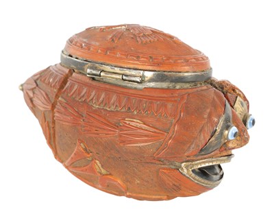 Lot 751 - A 19TH CENTURY CARVED CINNABAR BUG BEAR SNUFF BOX