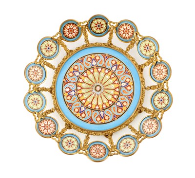Lot 721 - A 19TH CENTURY CONTINENTAL ENAMELLED PORCELAIN AND ORMOLU MOUNTED PLATE