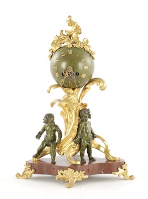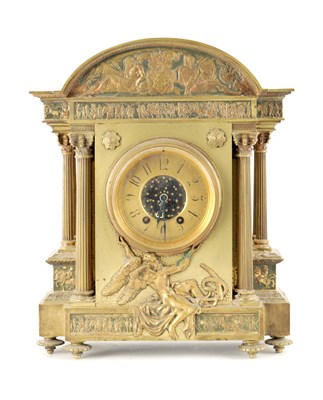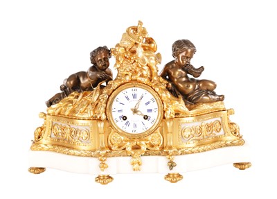 A 19TH CENTURY ORMOLU AND BRONZE WHITE MARBLE MANTEL CLOCK
