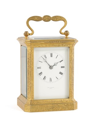 PAUL GARNIER, PARIS. A 19TH CENTURY FRENCH GILT ENGRAVED STRIKING CARRIAGE CLOCK