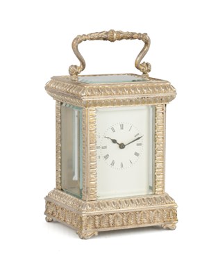 A LATE 19TH CENTURY FRENCH ENGRAVED STRIKING CARRIAGE CLOCK