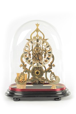 A 19TH CENTURY EIGHT-DAY BRASS FRAMED SKELETON CLOCK