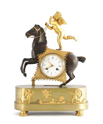 ROBERT, A PARIS. A MID 19TH CENTURY FRENCH ORMOLU FIGURAL MANTEL CLOCK