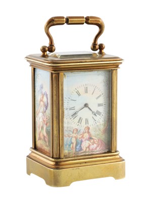 A LATE 19TH CENTURY FRENCH PORCELAIN PANELLED REPEATING CARRIAGE CLOCK